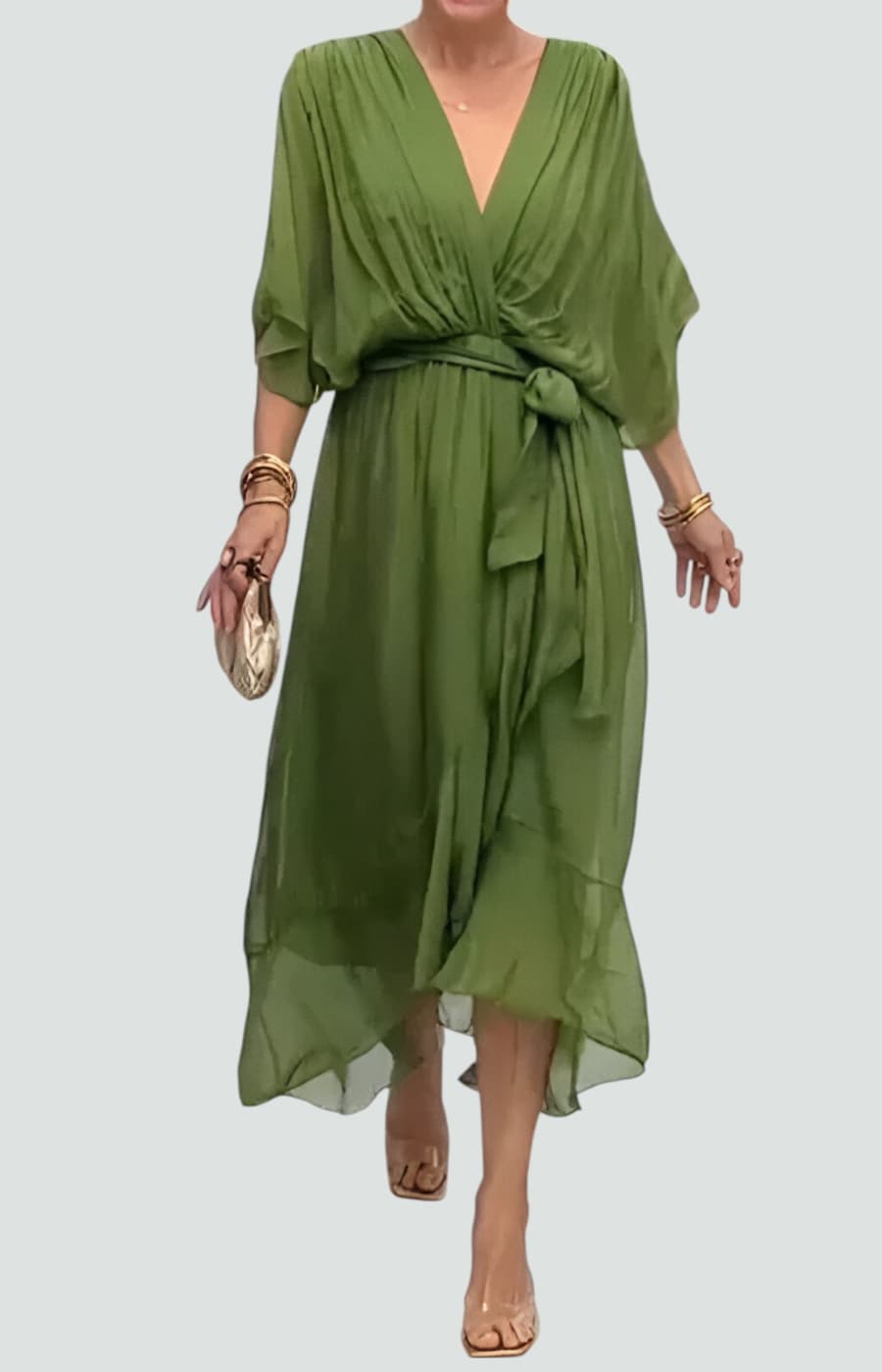 MONICA | VESTIDO FLUIDO DE CHIFFÓN CON ESCOTE EN V