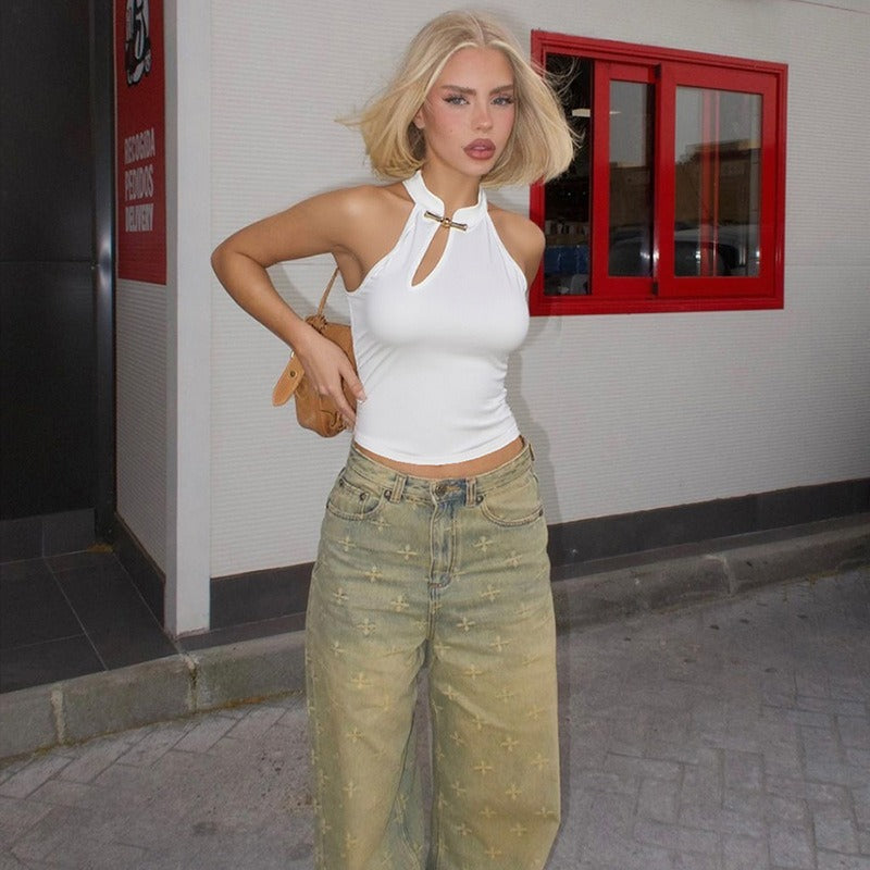 Top mujer sin mangas ajustado cuello halter aro - Indira