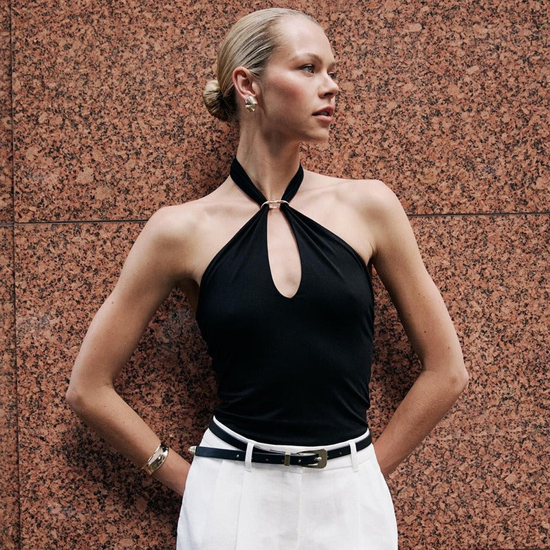 Top para mujer con escote halter fruncido diseño asimétrico - Kiara