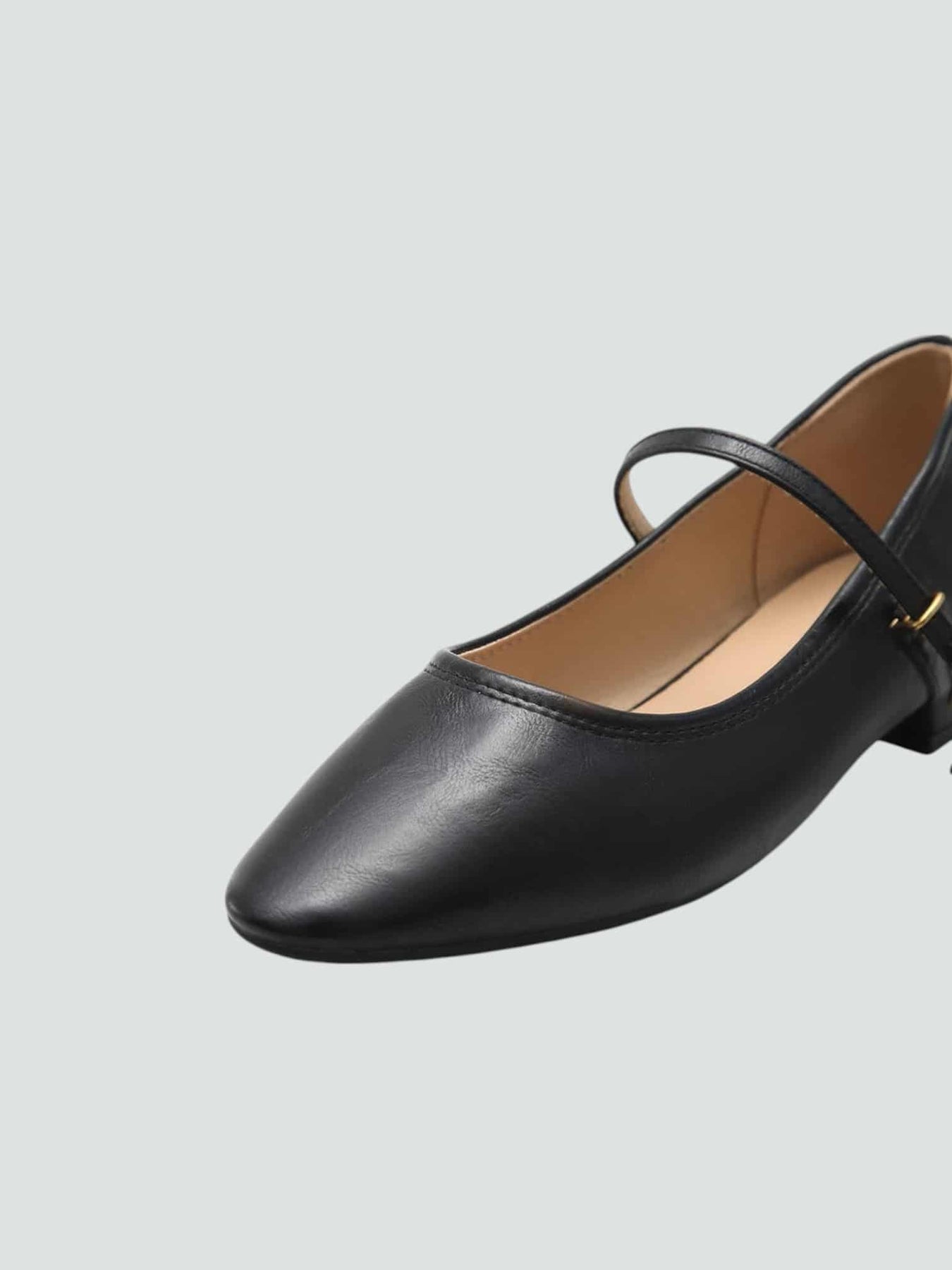 Una reinterpretación moderna del clásico ballet. Este zapato plano con tira combina comodidad y delicadeza, ideal tanto para el día a día como para ocasiones más formales. La punta estilizada aporta un aire elegante, mientras que la correa asegura un ajuste femenino y firme.
