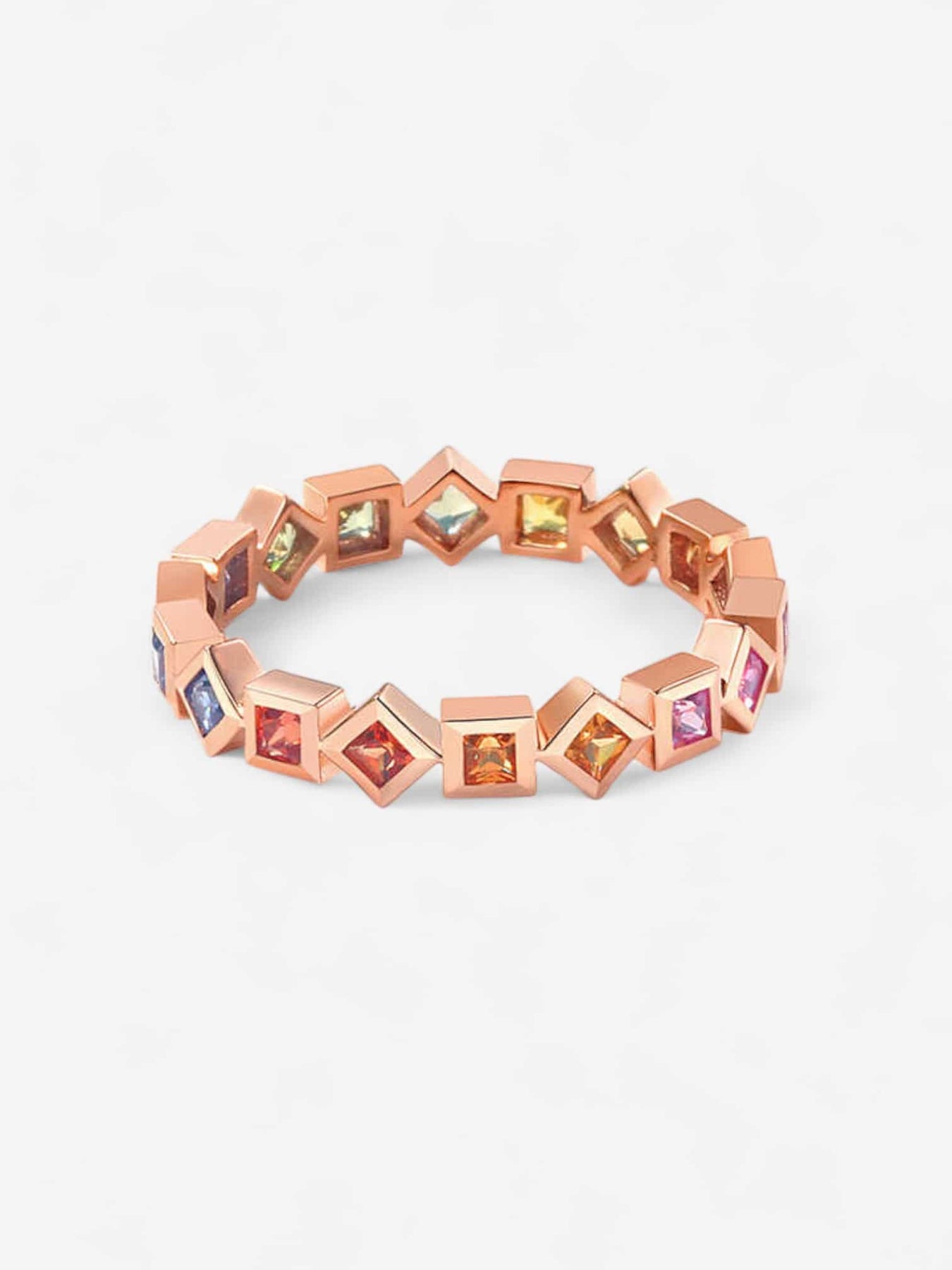 El Anillo Aurora Rainbow envuelve tu dedo en un vibrante baile de colores — un diseño alegre y escultural inspirado en las auroras boreales.