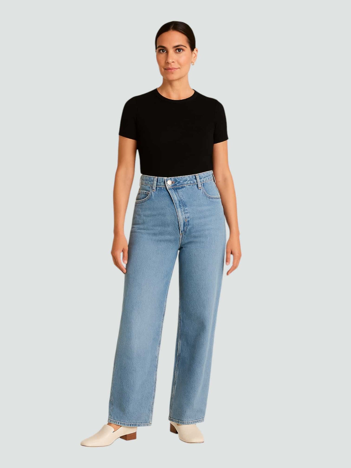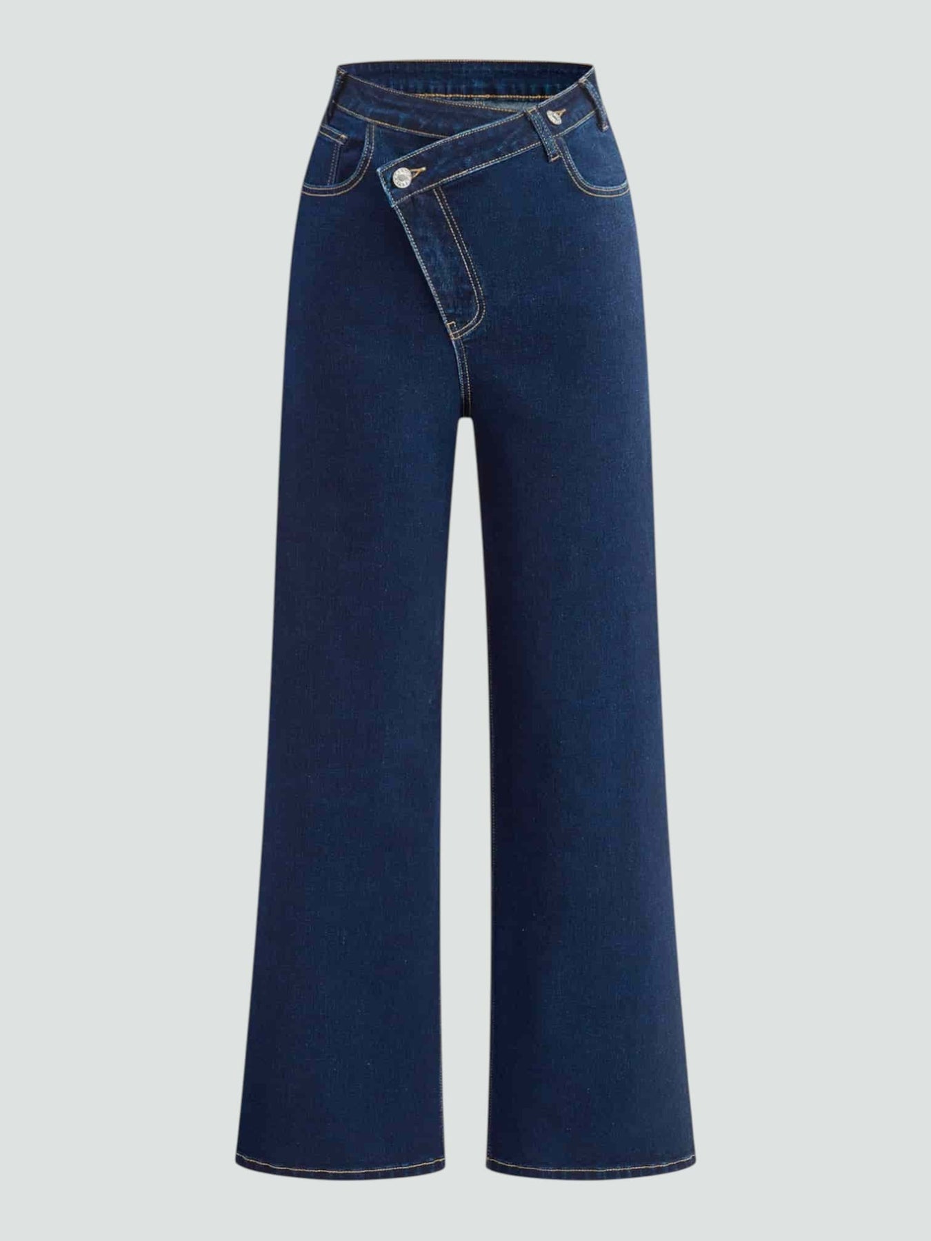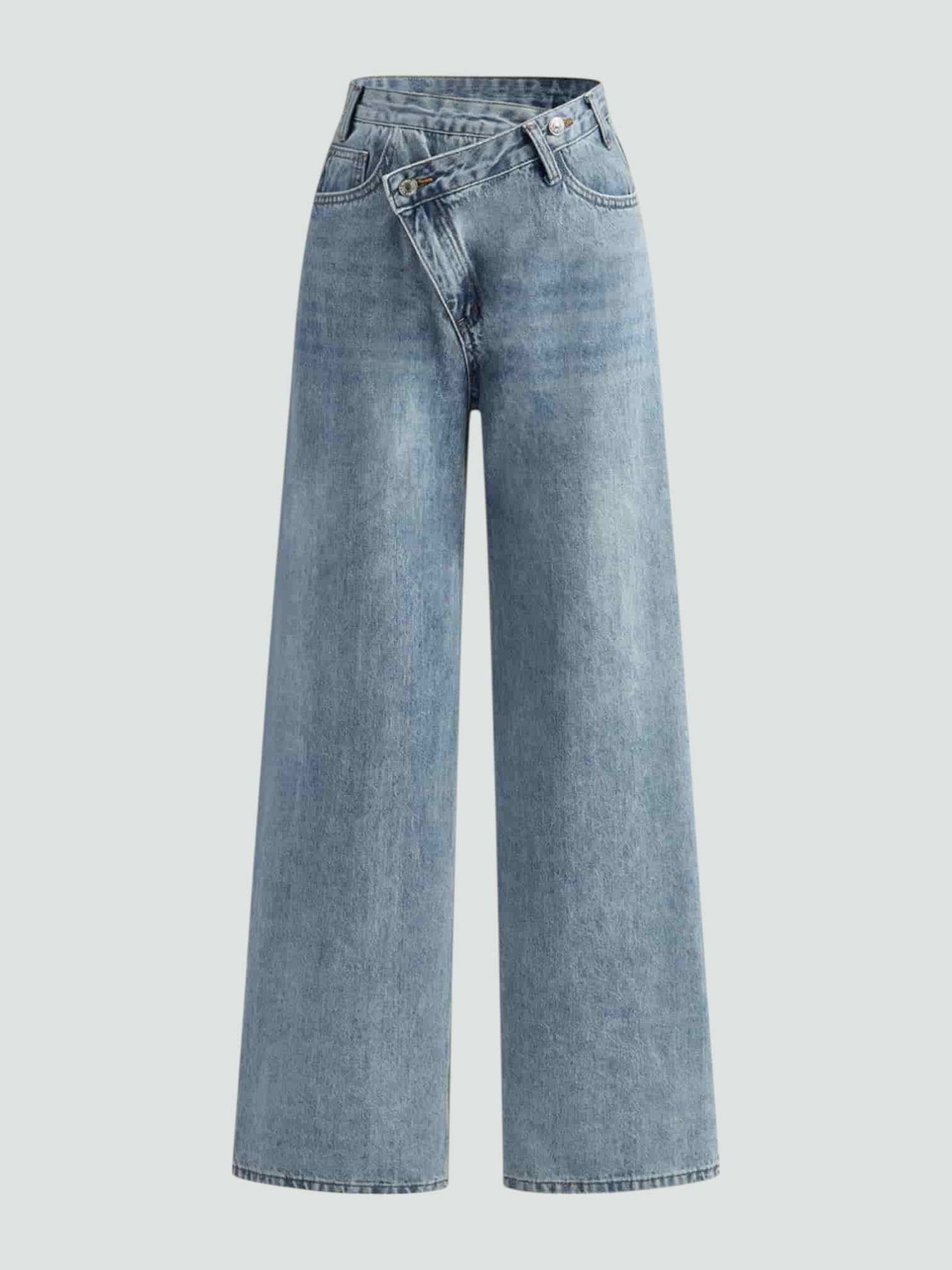Una silueta clásica con un giro inesperado. El diseño cruzado en la cintura aporta personalidad sin perder la esencia atemporal del denim. Perfectos para elevar tu look diario con un toque sutil de estilo.