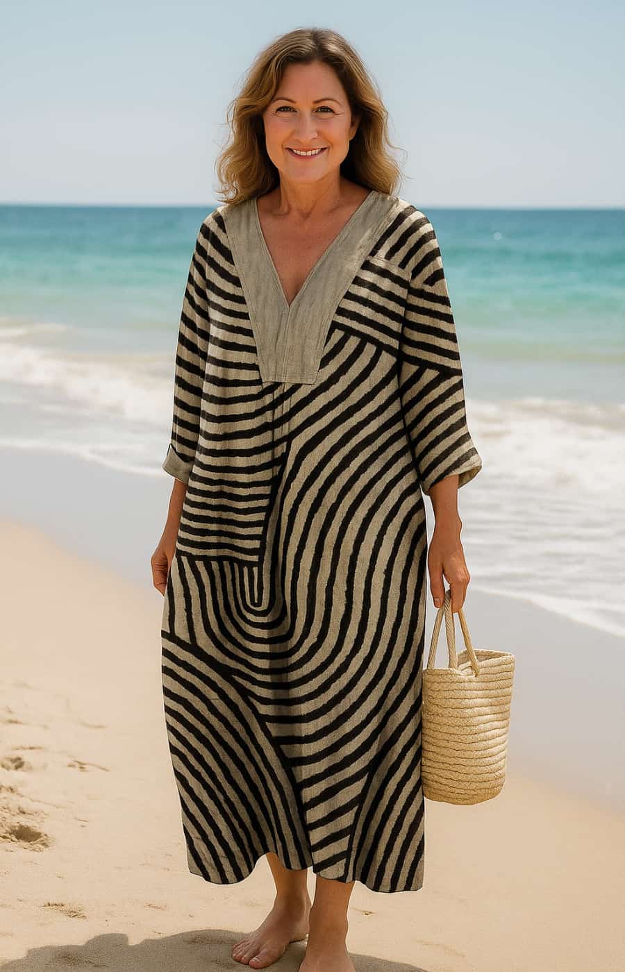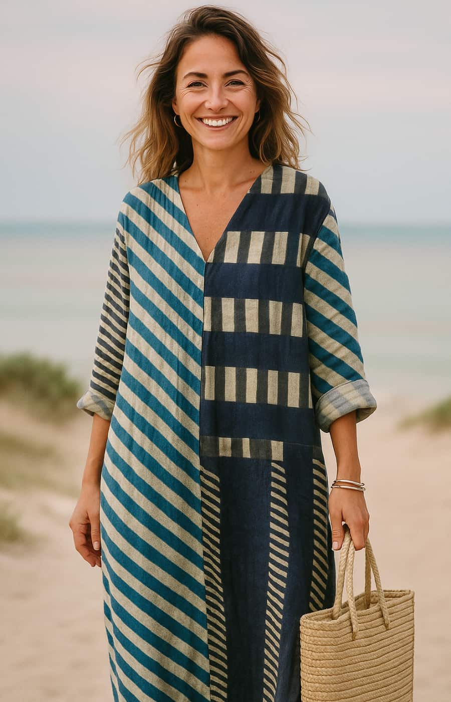 Calma, libertad y estilo en cada costura. ALEJANDRA es ese vestido que fluye contigo, con un estampado etéreo que evoca paisajes lejanos y momentos de paz bajo el sol. Su diseño discreto con efecto tummy control estiliza la silueta sin comprometer la comodidad.