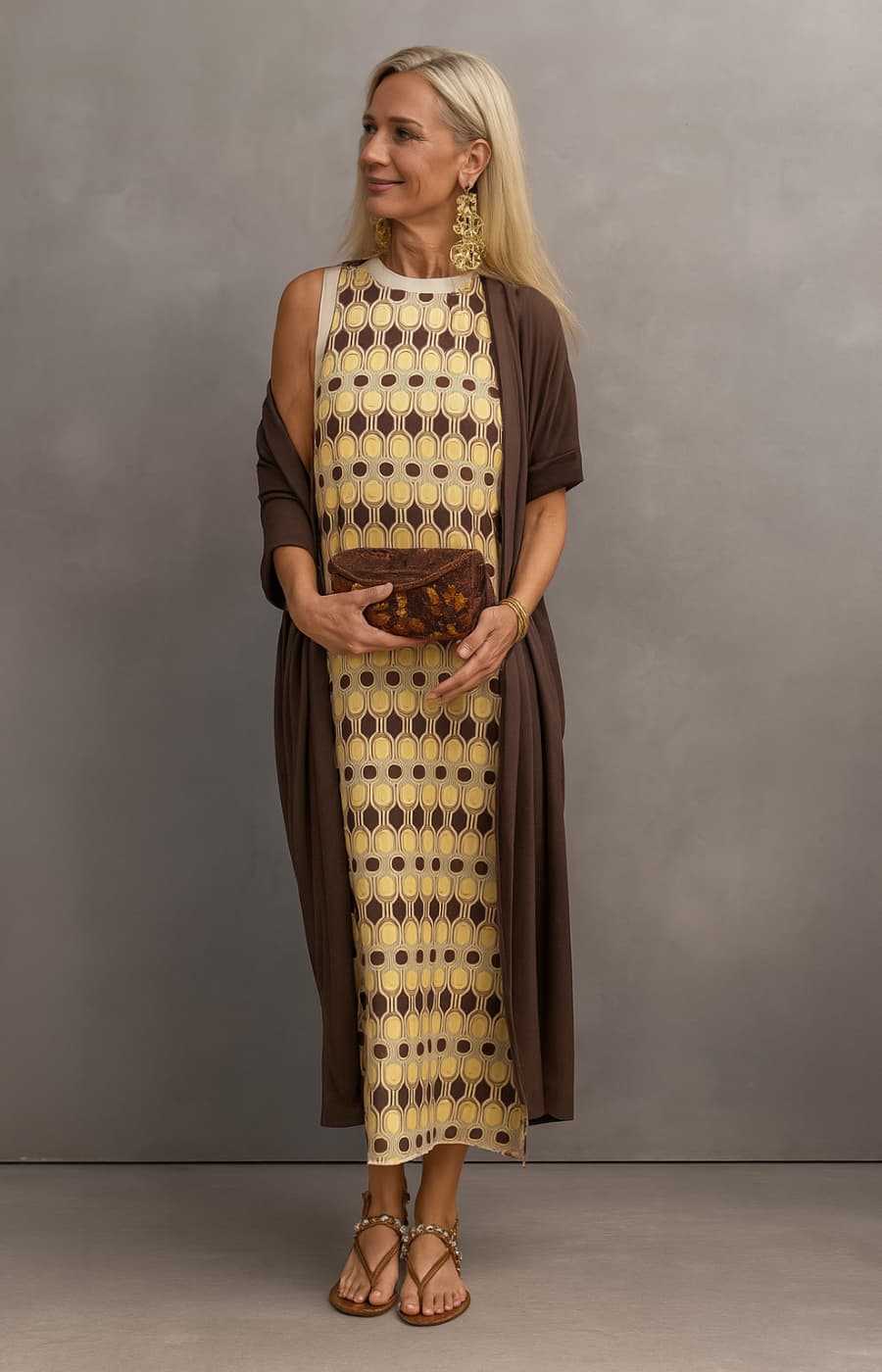 La stola a juego completa este conjunto pensado para mujeres que ya saben lo que les favorece… y desean seguir brillando.