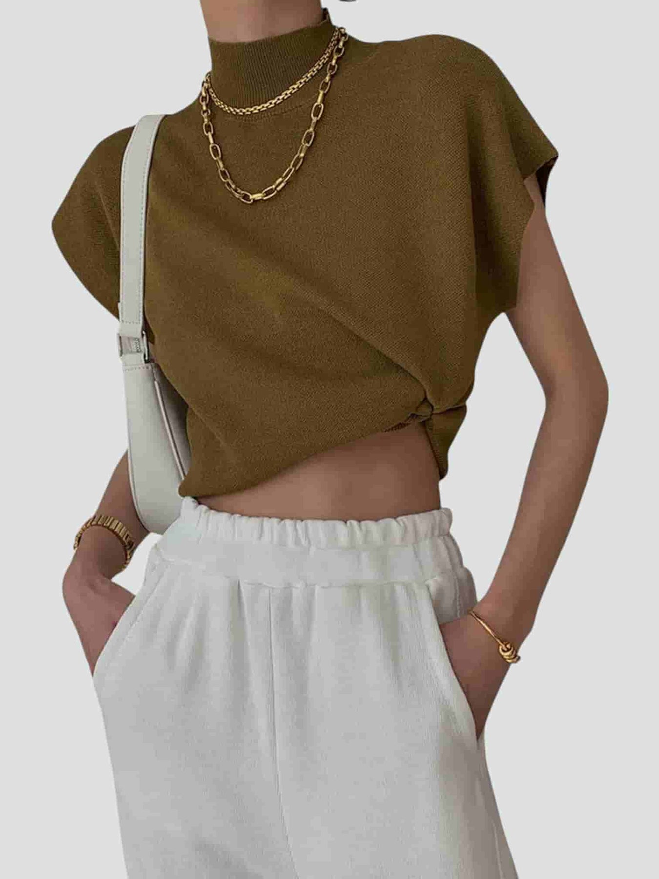 ÁNGELA | TOP DE PUNTO SIN MANGAS CON CUELLO ALTO