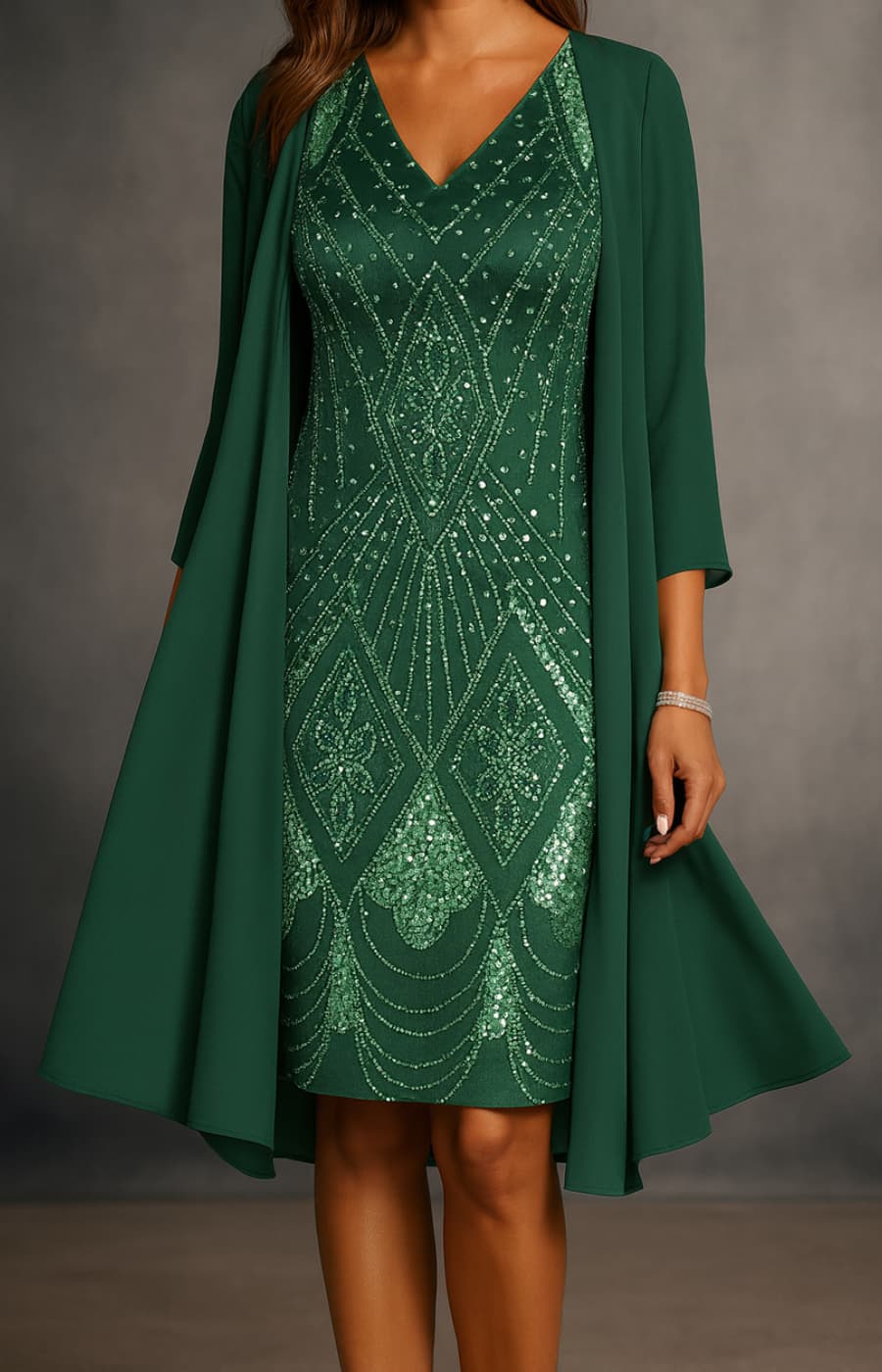 AURELIA | CONJUNTO ELEGANTE DE VESTIDO Y CÁRDIGAN EN SATÉN