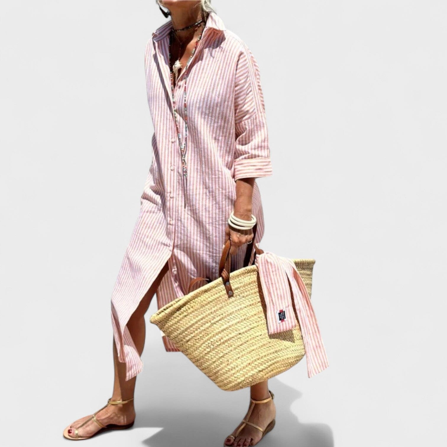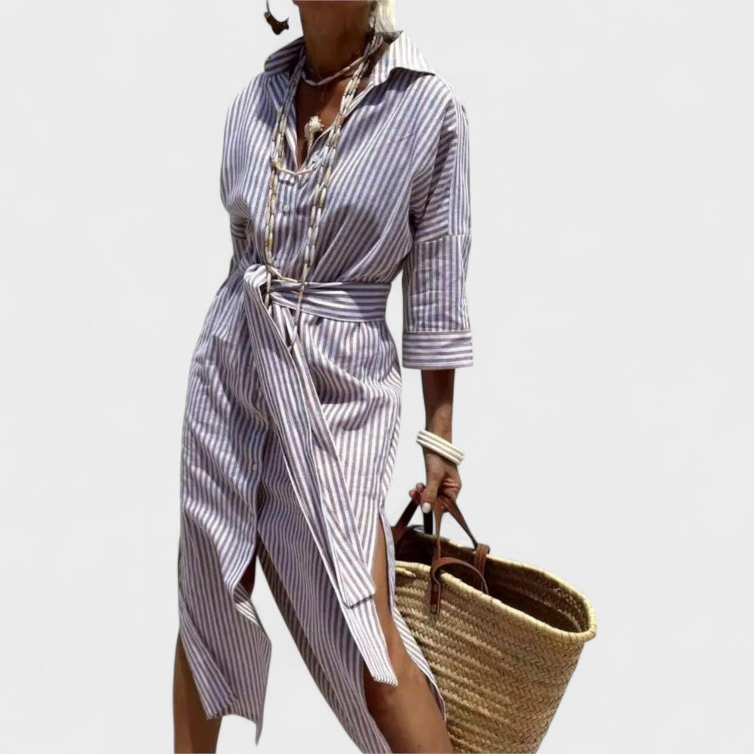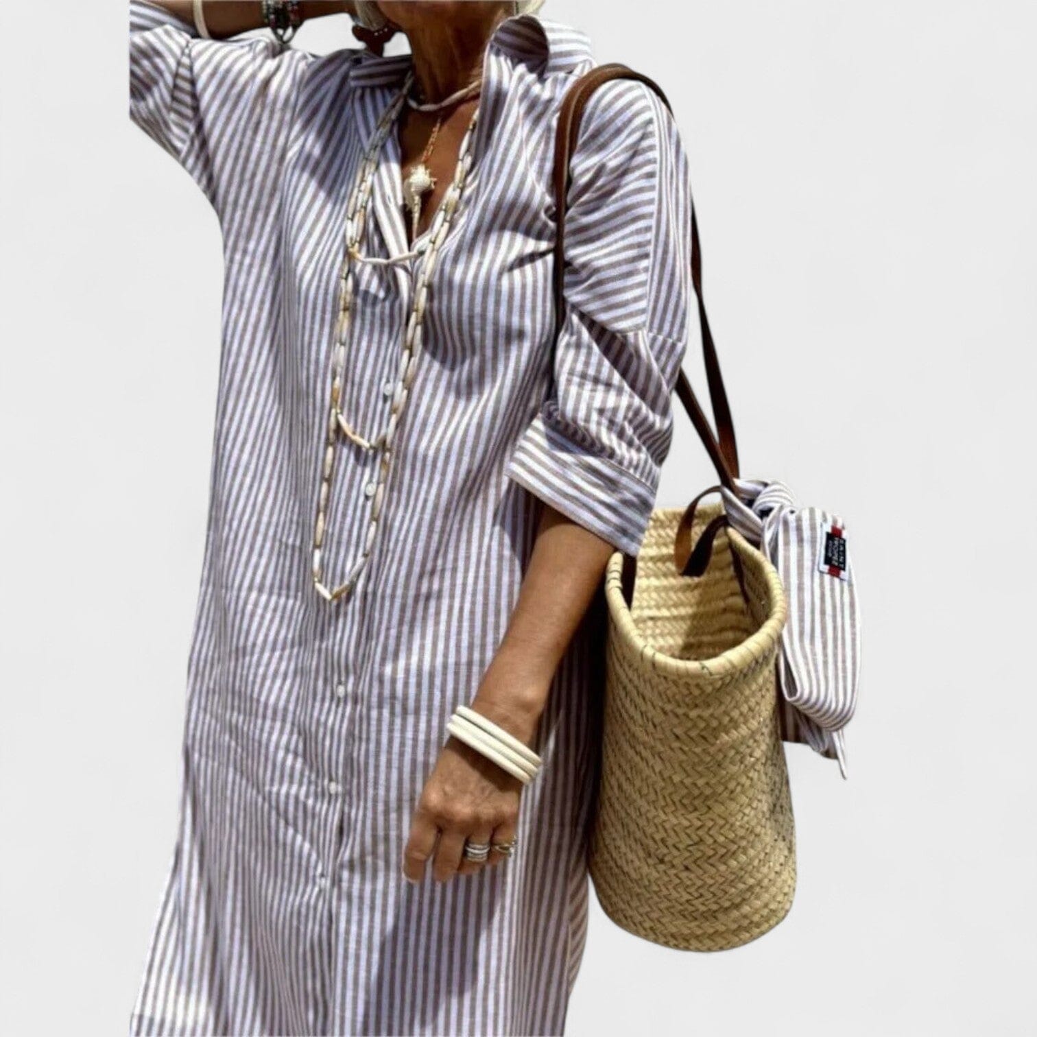Denise – Vestido a rayas con cuello que combina elegancia y comodidad