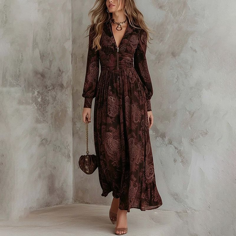 Descubra la elegancia atemporal con este Vestido Midi Amelia™ con Estampado Paisley. El sofisticado diseño de manga larga y el moderno cuello con cremallera combinan el encanto vintage con un toque contemporáneo, convirtiéndolo en una elección versátil para cualquier ocasión, desde la oficina hasta las reuniones nocturnas.