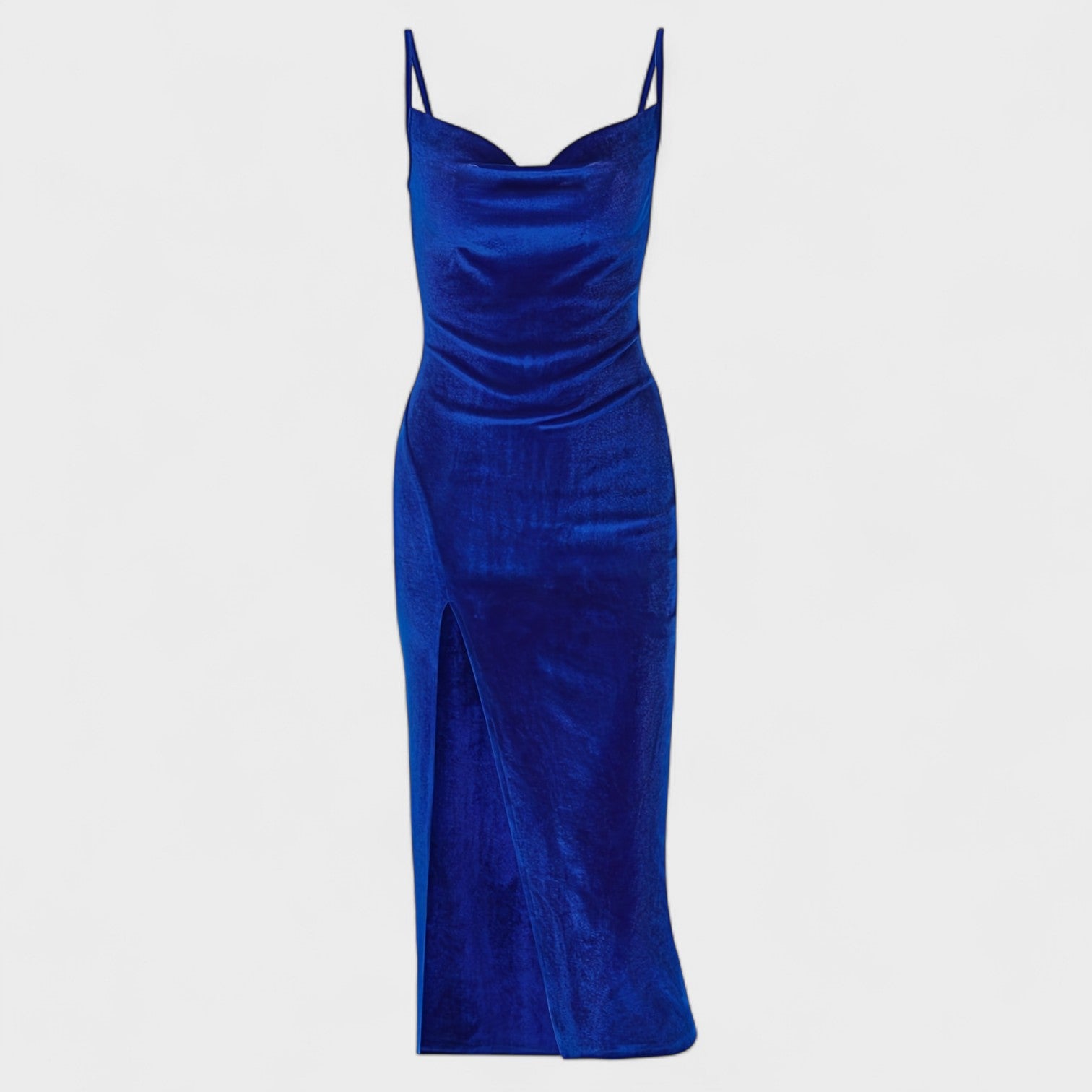 Disfruta de la elegancia y sensualidad del Gabriela – Vestido de Terciopelo con Abertura Lateral de tu marca favorita, diseñado para realzar tu figura en esas noches especiales.