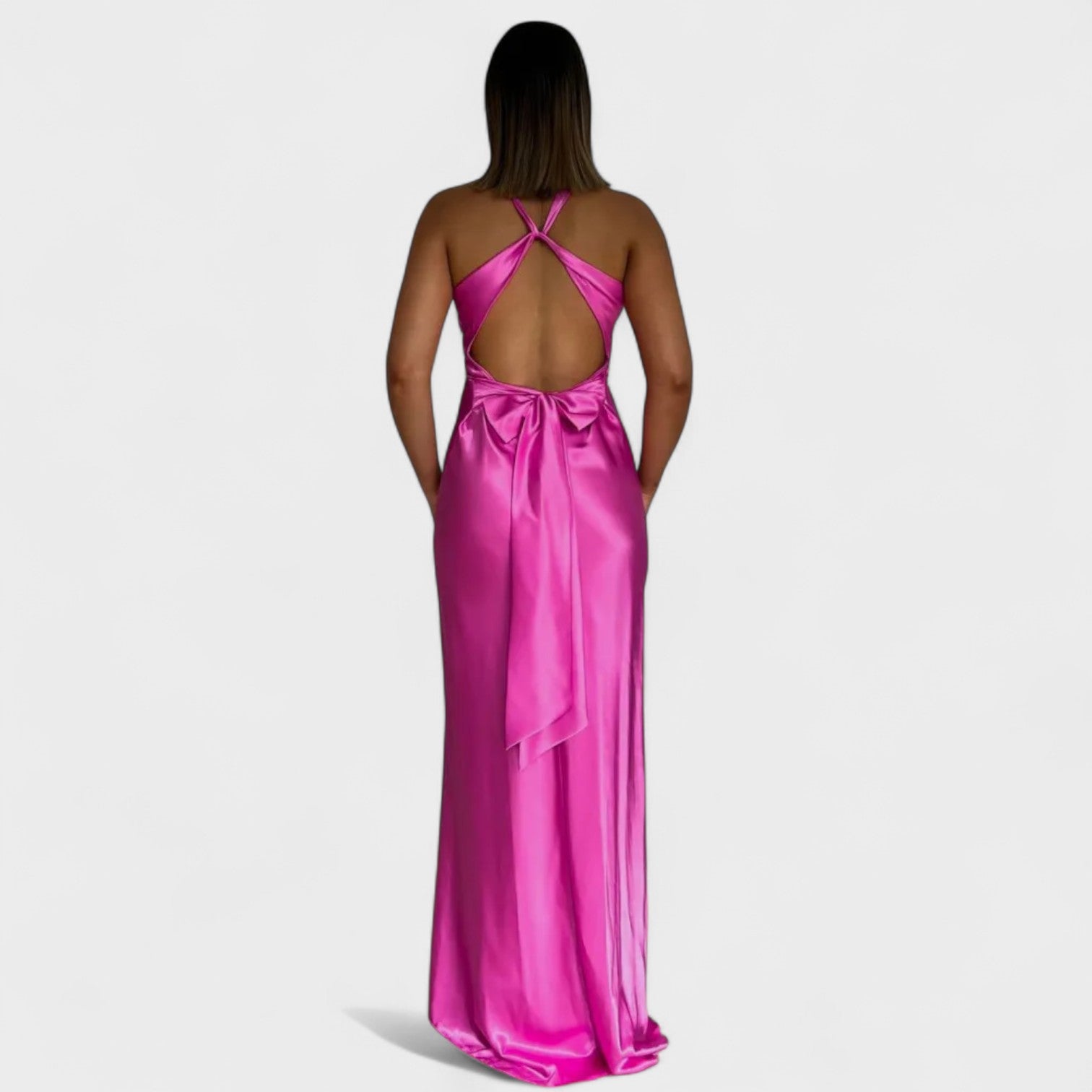 Isabella – Vestido Largo de Satén con Lazo Espalda que realza tu elegancia