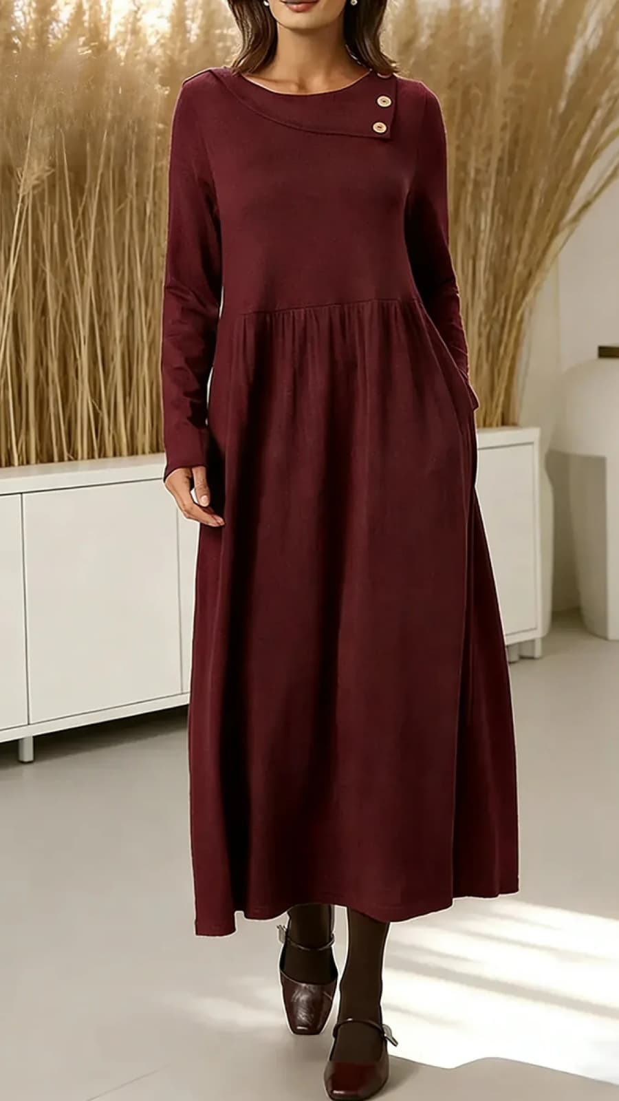 Este elegante vestido ligero de diario combina estilo y comodidad en un diseño que se adapta perfectamente a tu día a día. El vestido está confeccionado en un tejido de calidad suave que se siente agradable contra la piel durante todo el día. A diferencia de muchos otros vestidos, la tela no es transparente, por lo que puedes llevarlo con confianza sin necesidad de leggings o enagua.