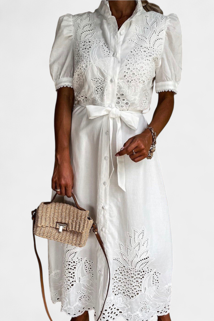Nerea – Vestido camisero bordado que realza tu frescura femenina