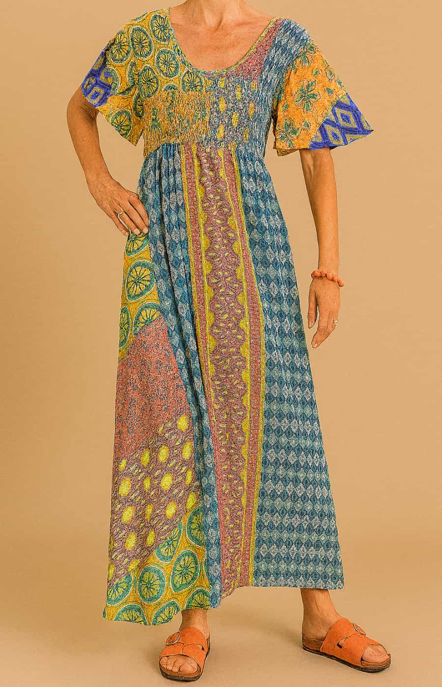 La elegancia atemporal cobra vida en un vestido que se siente como una segunda piel. LORENA envuelve tu silueta con suavidad y frescura, dándote confianza serena y un aire distinguido en cada paso. Su tejido ligero y transpirable cae con gracia, mientras el estampado paisley en tonos refinados aporta un carácter artístico sin perder la sofisticación.