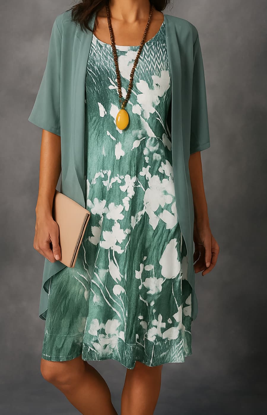 MARÍA | VESTIDO FLUIDO CON CHALECO ELEGANTE
