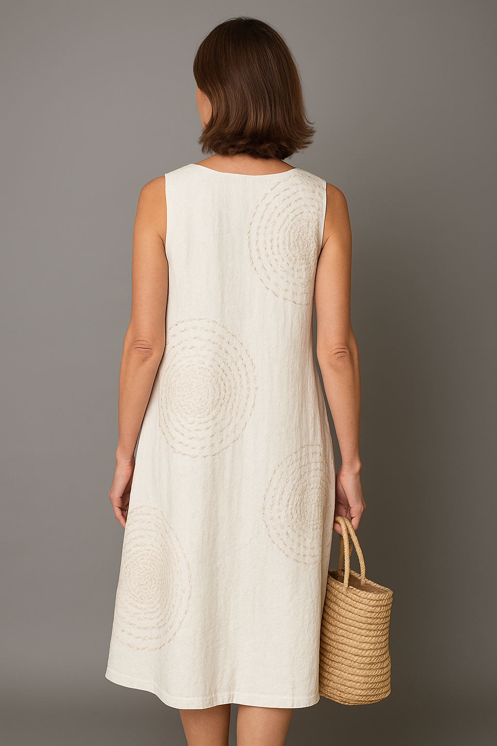 🎨 Kleur: Zandwit met beige cirkelborduursels